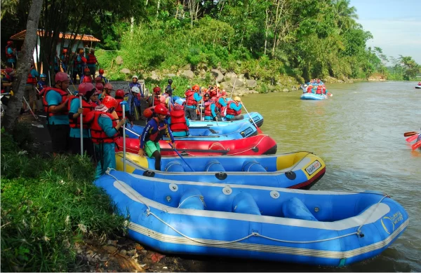 Arung jeram adalah salah satu aktivitas olahraga ekstrem yang melibatkan navigasi perahu melalui air yang deras dan berliku. Aktivitas ini biasanya dilakukan di sungai atau sungai deras dengan menggunakan perahu khusus yang dilengkapi dengan peralatan keselamatan seperti helm dan jaket pelampung. Dapatkan pengalaman sekali seumur hidup selama trip kamu ke Banjarnegara dengan mencoba rafting di Sungai Serayu yang menakjubkan, sungai terpanjang di Jawa Tengah. Kagumilah pemandangan di sekeliling sungai, seperti hutan tropis, air terjun yang mengagumkan, dan ngarai-ngarai indah!. Setelah tiba, kamu akan berganti pakaian dan memakai peralatan rafting. Tak lupa juga ada pengarahan oleh pemandu profesional tentang teknik rafting yang benar dan aturan keamanan berkegiatan. Mulailah petualangan rafting kamu selama sekitar 2 s/d 3 jam dan rasakan dinginnya air sungai menerpa kulit saat kamu hendak mencapai garis finish. Beristirahatlah dan kembalikan energi kamu dengan menyantap kelezatan buffet. Tersedia menu masakan lokal yang segar. Kemudian, mandi dan kembali ke kota hotel atau asal. Ini merupakan petualangan asyik yang bisa diikuti seluruh anggota keluarga, apalagi para pemburu adrenalin di Jawa Tengah.
