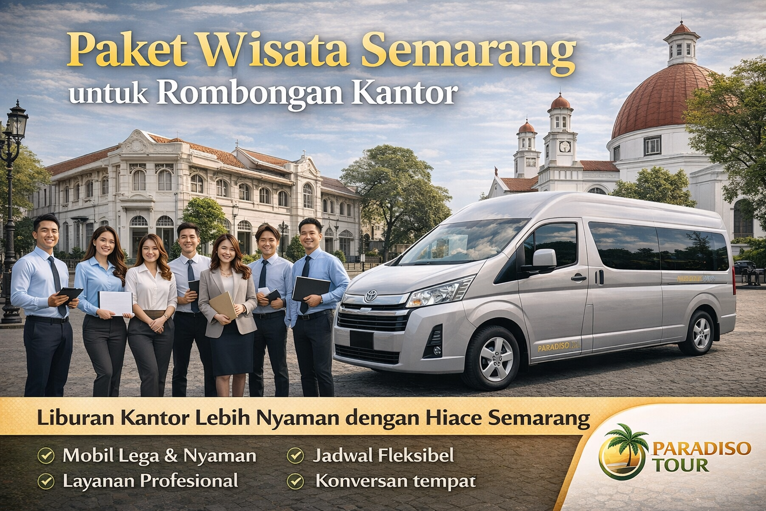Bagi perusahaan yang ingin menyelenggarakan outing, gathering, atau perjalanan dinas dengan konsep yang rapi dan nyaman, paket wisata Semarang untuk rombongan kantor menjadi pilihan tepat. Dengan dukungan armada Hiace Semarang, perjalanan terasa lebih eksklusif, terkoordinasi, dan efisien untuk kebutuhan corporate.